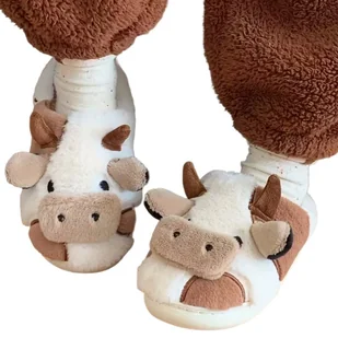 Ciepłe Pluszowe Kapcie Biało-Brązowa Krówka 40-41