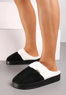 Czarne Płaskie Kapcie z Futerkiem Leretha