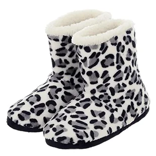 Damskie kapcie buty luksusowe nadruk w panterkę polar sztywna antypoślizgowa podeszwa, Czarny, 40 EU