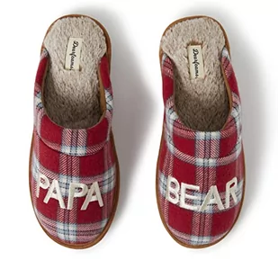 Dearfoams Męskie kapcie tata niedźwiedź, czerwone/niebieskie w kratkę, rozmiar M, Czerwony niebieski w kratkę, medium