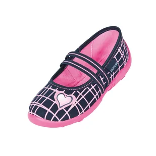 Dziewczęce granatowe kapcie w kratę z nadrukiem serduszka