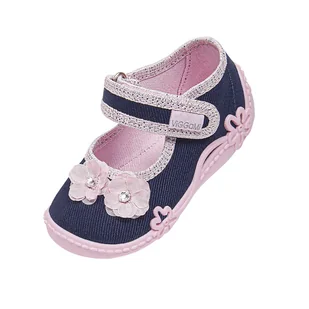Dziewczęce kapcie na rzep z kwiatkami 3D granatowe