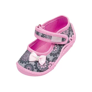 Dziewczęce kapcie z kokardką 3D szaro-różowe