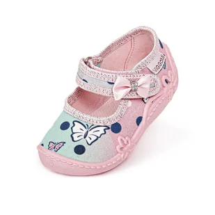 Cukierkowa propozycja dla dziewczynek - pastelowe kolory, nadruk w motylki. Model na ozdobnej, lekkiej, bezzapachowej, oddychającej podeszwie.