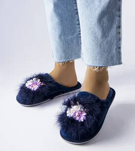 Granatowe ciepłe kapcie z kwiatkami Moly-37
