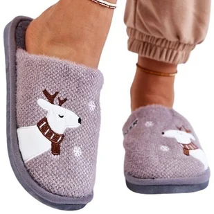 Kapcie Cieple Lekkie Damskie z Reniferem Motyw Zimowy Papcie Szare 37