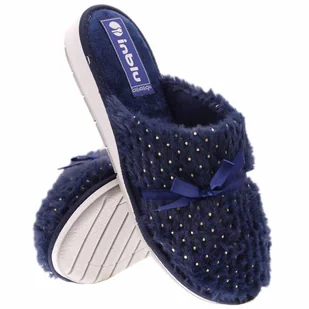 Granatowe kapcie damskie Inblu obuwie domowe z haftem XF99998W