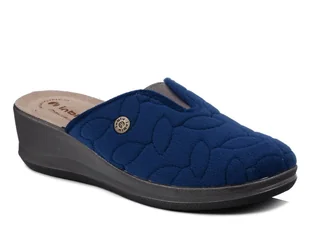 Kapcie damskie pantofle domowe zakryte granatowe na koturnie Inblu GI-24-37