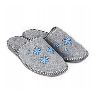 Kapcie damskie R.41 filcowe szare ciepłe i wygodne z haftem kwiatowym KD-08-NB-41