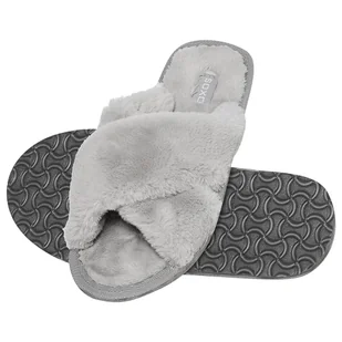 Kapcie damskie SOXO futrzane szare z twardą podeszwą TPR - 37–38