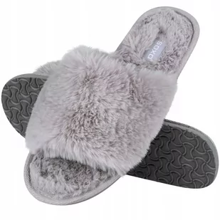 Kapcie Damskie Soxo Futrzane Szare Z Twardą Podeszwą Tpr - 37–38