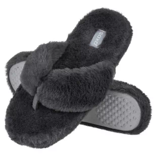 Kapcie Damskie Soxo Futrzane Z Twardą Podeszwą Tpr Japonki Grafitowe - 39–40