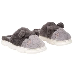 Kapcie Damskie Z Futerkiem Kotki Szare Wygodne Lekkie Ocieplane Z Futerkiem Ozdobione Papcie Pantofle Bambosze Laczki 38/39