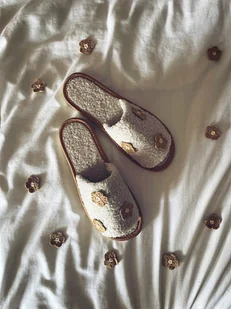 Poczuj komfort i urok naszych ręcznie robionych kapci, starannie wykonanych z miękkiego materiału i ozdobionych delikatnymi kwiatowymi aplikacjami. Każda para jest wyjątkowa – to idealne połączenie przytuln ...