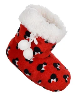 Pluszowe kapciuszki za kostkę dla dziewczynki, idealne na zimową porę. Zapewnią ciepło i wygodę, a antypoślizgowa podeszwa zapobiegnie wywróceniu się. Niezwykle komfortowe, wykończone od środka puchową warstwą materiału. Zewnątrz ozdobione białym kożuszkiem, oraz pluszowymi pomponikami. Całość pokrywa nadruk z motywem Myszki Minnie, wykonany metodą sitodruku, dzięki czemu jest trwały.