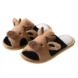 Kapcie Papcie Damskie Brązowe Z Krówką Wygodne Lekkie Wsuwane Cieple Z Futrem 40/41