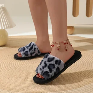 CECHY PRODUKTU: Kapcie domowe Ozdobne futerko Wzór pantery 3 wersje kolorystyczne Miłe w dotyku