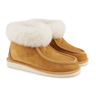 Pantofle damskie ze skóry owczej z wełną brązowe bambosze