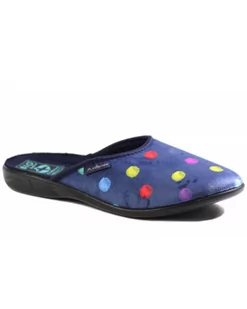 HOT POTATOES, NOVI Model Damskie wielokolorowe wytłaczane kropki, filcowe kapcie Babucha, wyjmowana, wyściełana wkładka, elastyczna podeszwa z pianki EVA z recyklingu, Granatowy, 39 EU
