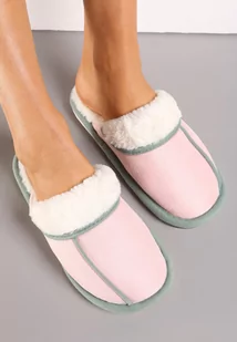 Różowe Wsuwane Kapcie z Przeszyciami Wyścielone Futerkiem Dyranthia