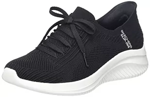 Skechers Damskie kapcie Ultra Flex 3.0, czarne dzianinowe/białe wykończenie, 6,5 UK, Czarne dzianinowe białe wykończenie, 39.5 EU