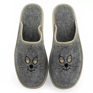 Filcowe, szare pantofle damskie Pantofle wykonane z ekologicznego filcu w modnym szarym kolorze. Dzięki higroskopijnym właściwościom filcu, stopy zachowują ciepło, nie pocąc się. Wygodny klin amortyzuje stopę podczas chodzenia, dając poczucie komfortu i odprężenia. Podeszwa została podklejona antypoślizgowym i wytrzymałym materiałem wysokiej jakości, dzięki temu kapcie są odporne na ścieranie i będą służyć przez długi czas. Specyfikacja: