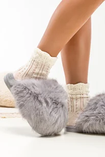 Szare kapcie damskie obuwie domowe z futerkiem Casu 2024-2