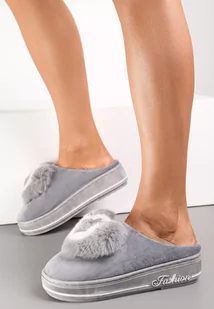 Szare Kapcie na Grubej Podeszwie z Futrzaną Aplikacją Phoenix