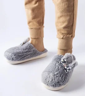 Szare ocieplane damskie kapcie z uszami Buga-40/41