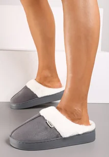 Szare Płaskie Kapcie z Futerkiem Leretha