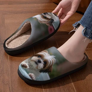 TEMU Wygodne Damskie Kapcie z Nadrukiem - Odpowiednie na Zimne Podłogi, Możliwość Prania w Pralce, Uroczy Wzór Szczeniaka, Trwała Podeszwa z Chwytem,