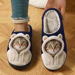 TEMU zimowe, codzienne kapcie dla par z wygodnego, miękkiego materiału z nadrukiem kreskówkowego kota (2025) | Całoroczne, wsuwane, możliwość prania