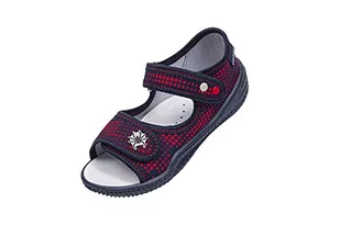 Sandał dla chłopca z ozdobą w postaci pająka. Nadruk uniwersalny w kolorze czerwonym na granatowym tle. Wkładka skórzana w standardzie. Podwójna regulacja na...