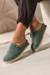 Zielone kapcie damskie Inblu obuwie domowe z wyjmowaną skórzaną wkładką ozdobny kwiat XH999956