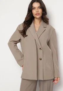 Beżowa Dwurzędowa Marynarka z Usztywnioną Linią Ramion Sonarilla