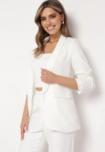 Biała Elegancka Marynarka z Rękawami 7/8 i Ozdobnymi Klapami Novse
