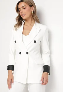 Biała Marynarka Dwurzędowa z Ozdobnym Klapami Lorhiris