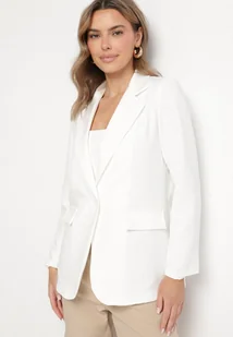 Biała Marynarka Jednorzędowa ze Wzorem Pasków Viviella