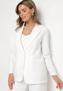 Biała Marynarka z Usztywnionymi Ramionami i Imitacją Kieszeni Vivimira