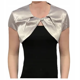 Bolerko satynowe srebrny z krótkim rękawem i guziczkiem - JUDYTA 44