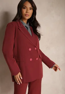 Bordowa Dwurzędowa Marynarka na Guziki z Poduszkami w Ramionach Elennia