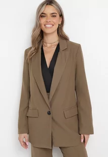 Brązowa Marynarka Zapinana na Guzik z Kieszeniami Polxeni