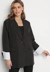 Czarna Jednorzędowa Marynarka Pudełkowa w Prążki Fonevia
