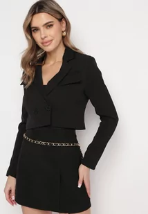 Czarna Marynarka o Krótkim Fasonie z Ozdobnymi Klapami Lafamia