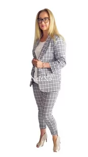Komplet spodni i marynarki to połączenie wyrafinowanego stylu z codzienną wygodą. Ten komplet w czarno-beżową kratę to doskonały wybór dla kobiet, które prag...