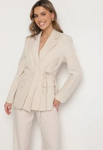 Jasnobeżowa Marynarka z Ozdobnym Wiązaniem Lenirin