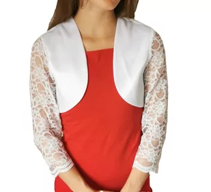 klasyczne bolerko satynowe białe z rękawem 3/4 z koronki - JULIA 52