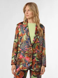 Stylowa marynarka Lucerna marki MAX&Co. o kroju oversize, wykonana z jedwabistej, połyskującej satyny z kolorowym, kreatywnym wzorem, umiejętnie zwraca na siebie uwagę. Marynarka jest częścią garnituru, ale może być również noszona samodzielnie.