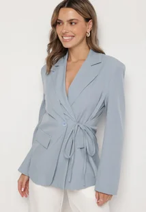 Niebieska Marynarka z Ozdobnym Wiązaniem Lenirin