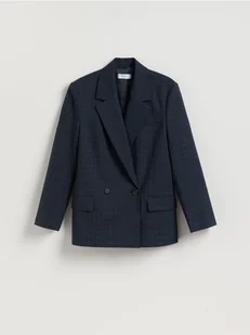 Reserved - Dwurzędowa marynarka w kratę - granatowy